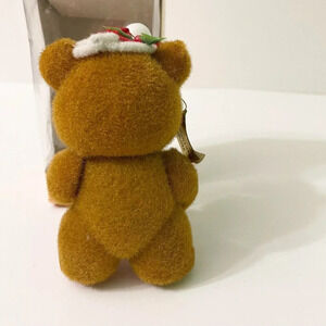 Vintage Jasco Flocked Velvet Christmas Teddies 4 Inch Hanging Tree Ornament