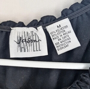 Vintage Jason Maxwell Black Ruffle Floral Embroidered Neck Line T Shirt Medium