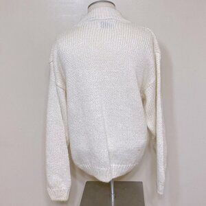 Great vintage condition, no stains. No holes. No pulls. One spot on the back looks like a stain but upon closer investigation appears to be colour variation in the fabric. Hand knitted. Beautiful mock neck sweater. Size L