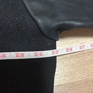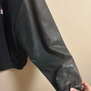 Stylish men's jacket featuring sleek black leather sleeves. Perfect for a modern, sophisticated look.