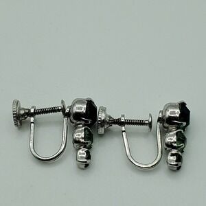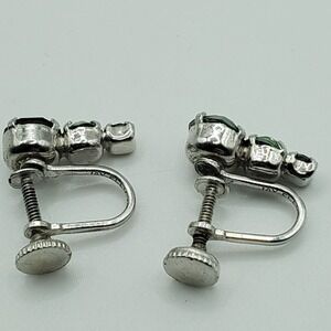 Vintage Jay Flex Sterling Earrings Green Rhinestones Screw Backs Fashion Jewelry