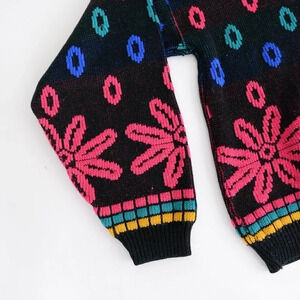 Vintage Jaymie Rose Black with Multi-Colour Floral Design Sweater