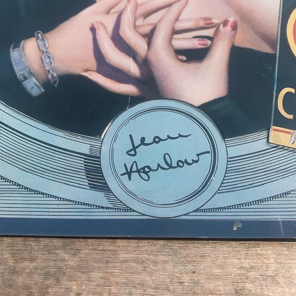 Vintage, antique, collectible, tobacco, advertising, tin sign, Jean Harlow, Hollywood, movie star, art deco, man cave, bar decor, retro.