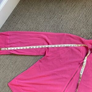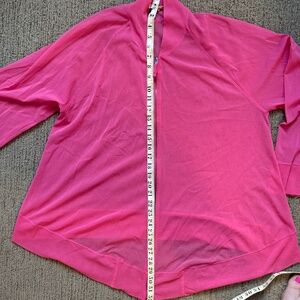 This vintage Jean Paul Guiltier mesh pink zip-up sweater is bright pink and oversized. Higher cut in the back. Made of sheer mesh. Size S. Will fit a variety of sizes depending on desired style.