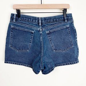 Vintage Jean Shorts Exposed Button Fly Rigid Cotton High Rise Waisted Dark Denim