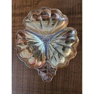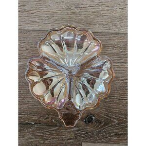 Vintage Jeannette Carnival Glass Marigold Clover Leaf Candy Dish Triple Divide