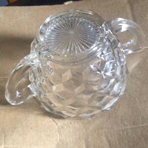 Vintage Jeannette clear Cube cream and sugar set, art deco depression glass -used. This type of glass became popular in the Great Depression and was produced for many years. Used in great shape, please check pics over.
