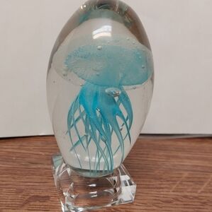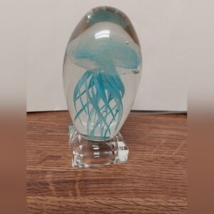 Vintage Jellyfish Hand-blown Glass Paperweight Glow in Dark Cap.