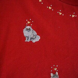 Vintage Jerzees Red Cat Kitten Embroidered Sweatshirt Grandma Chic Kitschcore M