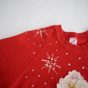 Vintage Jerzees Red Snowman Lace & Buttons & Snowflakes Crewneck Sweater 2X