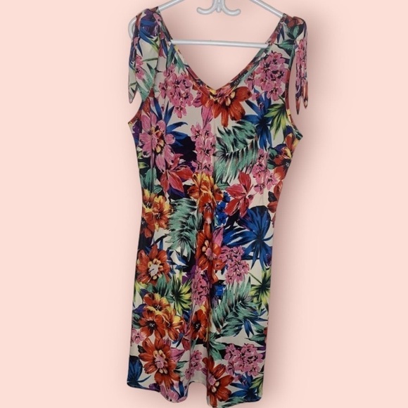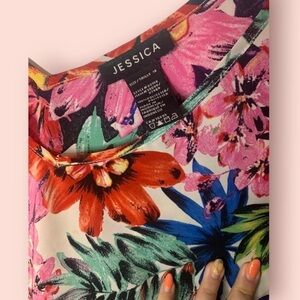Vintage Jessica Floral Patterned Midi Dress with Shoulder Details, Size 16