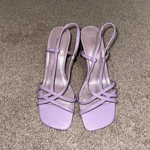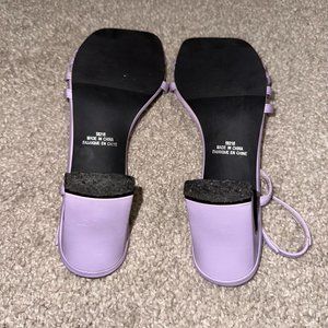 Vintage lavender purple strappy heels with a square toe by Jessica. Heel is a 3 inch block heel.