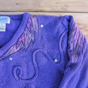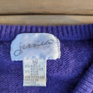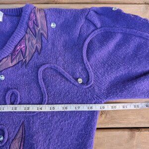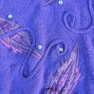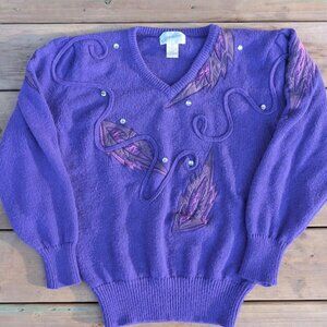 Vintage Jessica Made in Hong Kong Embellished Purple Sweater V Neck Size Medium