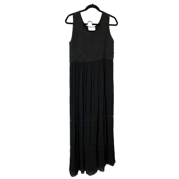 Vintage Jessica Maxi Dress Womens S Black Crochet Top Sheer Gauze Whimsigoth