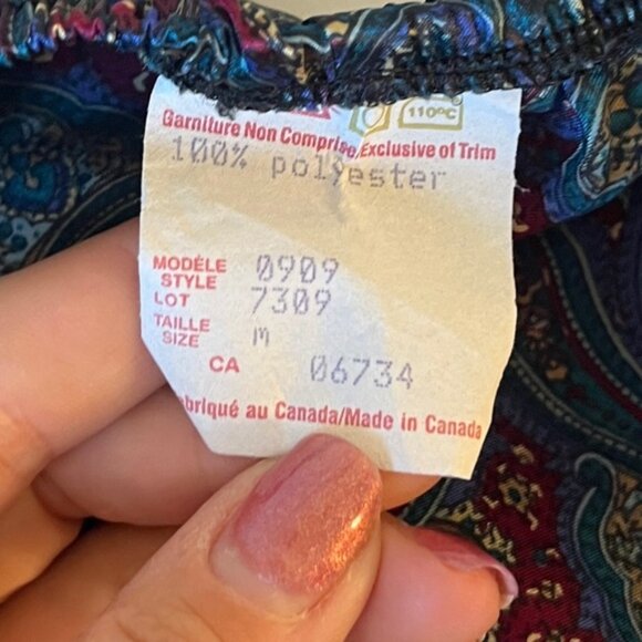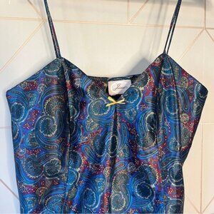 Vintage Jessica Paisley Satin 2 Piece Lingerie Lounge Set in very excellent pre worn condition. Channel timeless elegance with this gorgeous vintage satin set, featuring a paisley print camisole and matching high-waist shorts. The rich jewel tones of blue, teal, and burgundy with subtle gold accents give it a luxe, retro vibe. The camisole has slim straps and a slouchy fit, while the bottoms have a comfortable elastic waist for ease and style. Please see all photos.