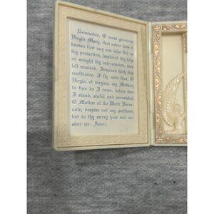 Vintage Jesus Virgin Mary with Prayer in Box Rosary Holder