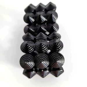 Vintage Jet Black Art Deco 3-row Stretch Ridged Round Pointed Beads Bracelet
