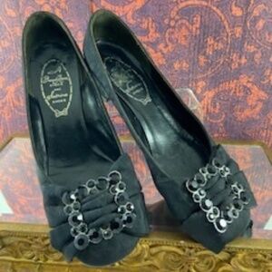 Vintage Jewelled Black Silk Shoes. 'French Room Shoes and Sabrina Shoes'
