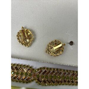 Vintage Jewels By Estrella Rhinestone Necklace And Clip On Earring Set Green and brown gold tone