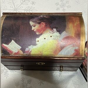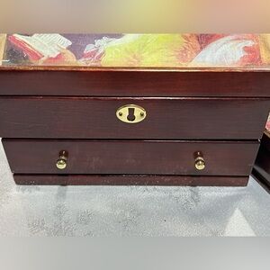 Vintage Jewllery Box Set with Art and Floral Design - scratches as is