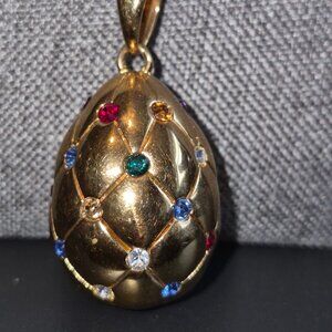 Vintage Joan Rivers Faberge Egg Gold Tone Pendant Necklace