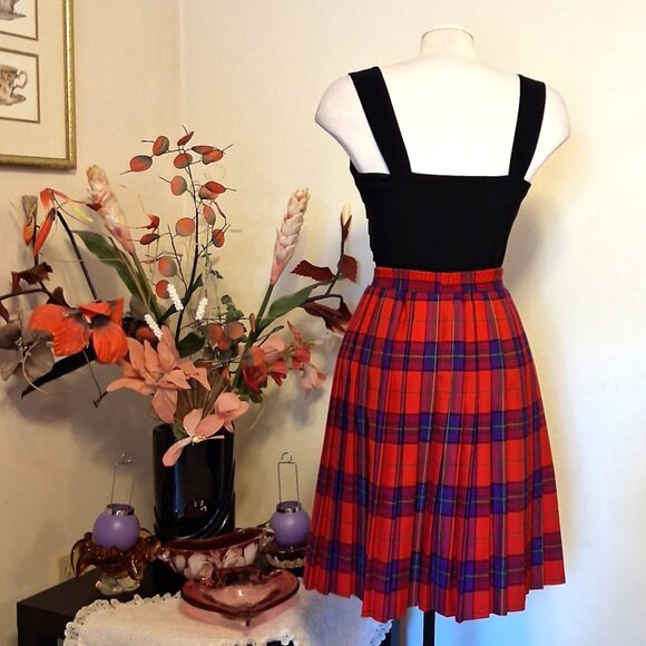 Vintage Jocardi Pleated Red Black Plaid High Elastic Waist Short Skirt Women’s Fall Winter VTG Skirts Size 12