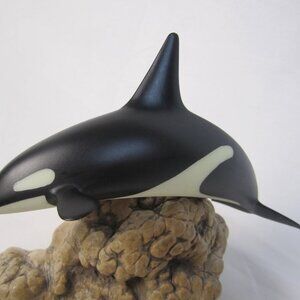 Vintage John Perry Orca Killer Whale Sculpture Burlwood Base Art 9.5"