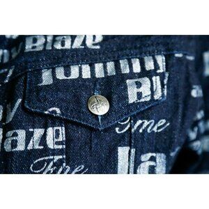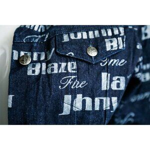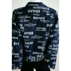 Vintage Johnny Blaze Flame Dark Denim All Over Print Women's Jacket M.