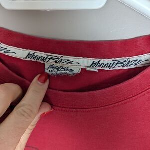 Vintage Johnny Blaze t-shirt featuring a bold red and black New York City scene that wraps from the front to the back. Classic 90s/early 2000s streetwear style with iconic graphics and oversized fit. Super soft and nicely broken in, perfect for collectors or fans of vintage hip-hop fashion. Size XL, excellent condition with vibrant print and no major flaws.