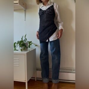 Vintage Jolie Intimates Black Sheer Slip Dress (M)