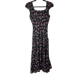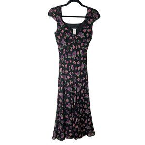 Vintage Jones New York Black Silk Floral Midi Dress Sz 6 Fairy Coquette Y2K