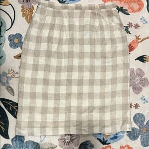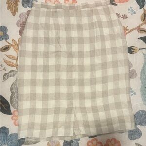 Stylish pencil skirt with a beige checkered pattern. Ideal for versatile styling.