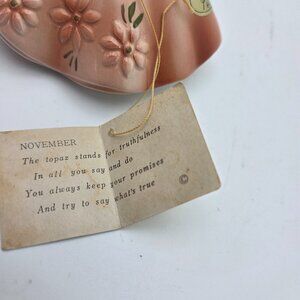 This vintage Josef Originals November Topaz Birthday Stone Figurine is a delightful nod to the 1950s style, making it a perfect addition to any room looking for a touch of nostalgia. The figurine features a lovely girl-like silhouette, beautifully rendered in a vibrant orange hue that captures the essence of the November birthstone, topaz.