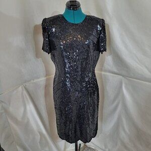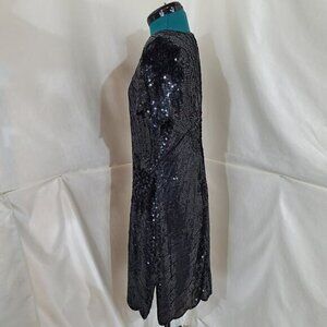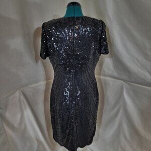 Vintage Joseph Ribkoff 1980s Black Silk and Sequin Cocktail Prom Dress - Small