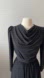 A hidden weighted drape detail at the neckline allows the cowl front to fall perfectly and stay in place — a couture-like touch rarely found in modern garments. The dress also includes subtle half shoulder pads that enhance the shoulder line without adding volume, creating a balanced and refined shape.