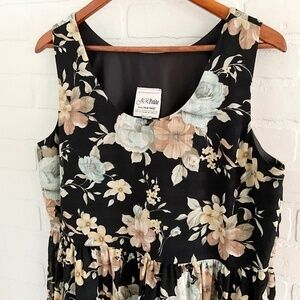Vintage Joseph Ribkoff Maxi Dress Dark Floral Roses Black Blue 16 Petite