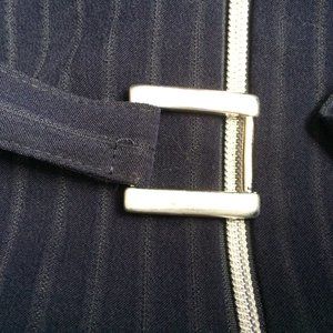 Vintage Joseph Ribkoff Womens Striped Jacket Sz 10 Navy Blue Belted Zip Closure