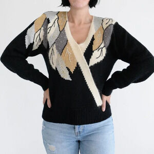 Vintage Joslen Smith Black with Gold Detail V-Neck Sweater LG