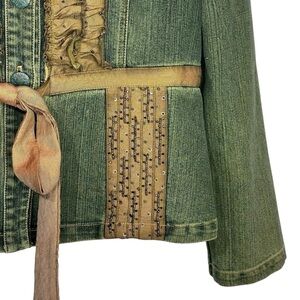Vintage Joy London Denim Ruffled Beaded Jean Jacket Large Extra Large