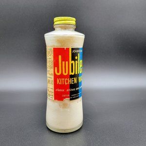 Vintage Jubilee Kitchen Wax Not Full Dried White Glass Jar SC Johnson AS IS Read