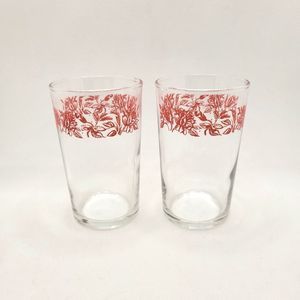 Vintage Juice Glasses Sour Cream Cups 6 oz Set 2 Red Rose Painted Band