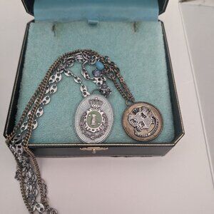 Double necklace which can be worn together or as separate pieces comes with original box used great condition