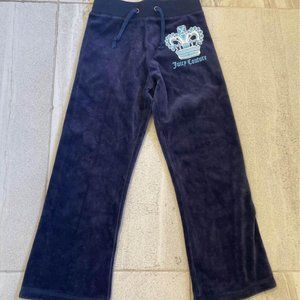 Here listed is a pair of navy blue velvet straight leg juicy couture pants for young kids, size 6. Lightly worn, great condition, a very rare piece.
