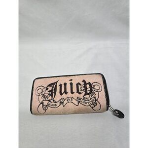 Vintage Juicy Couture Queen Of Couture Pink Velour Zip Wallet- Y2K- Some Stains