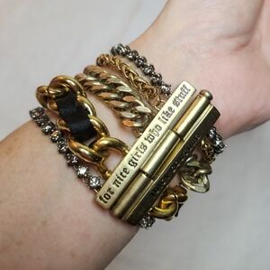 5 layer Black & Gold Chainlink Bracelet with Rhinestones and Slide Lock clasp, 'Nice Girls Who Like Stuff' by JUICY COUTURE.
