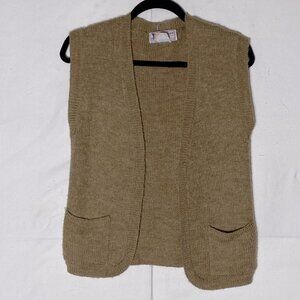 Vintage Junior Bazaar Tan Knit Open Front Vest Cardigan S