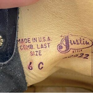 Vintage Justin Boots Black Pebbled Leather Lace Up Packer Boots 6