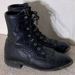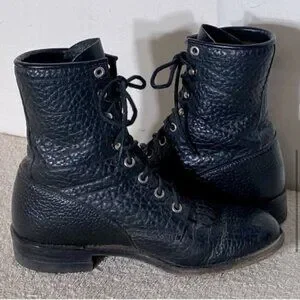Vintage Justin Boots Black Pebbled Leather Lace Up Packer Boots 6