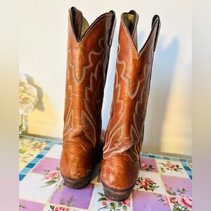 Vintage Justin Boots Brown Leather Western Cowboy Cowgirl Boots 10
