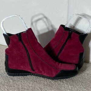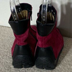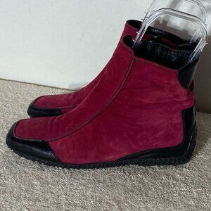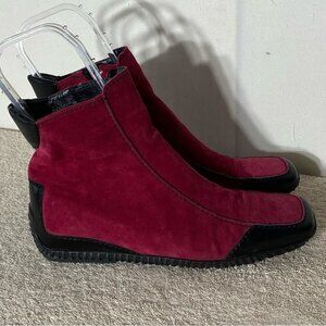 Vintage K Shoes Deep Red Suede Square Toe Ankle Boots Booties UK6